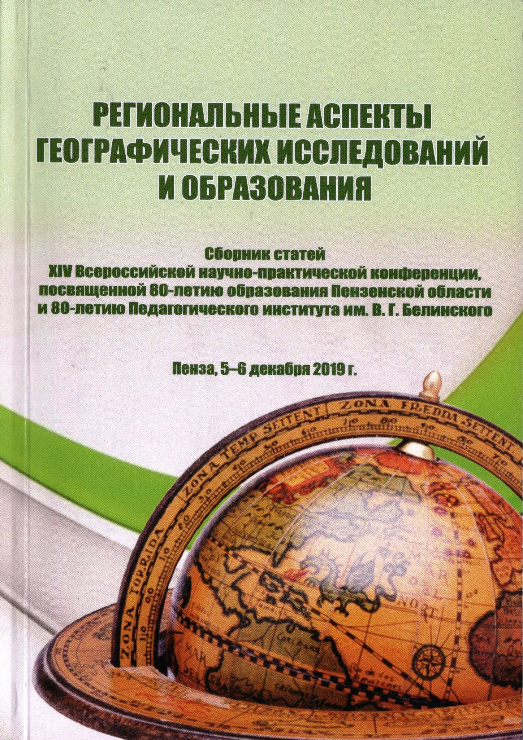 Региональные аспекты географических исследований и образования : сборник статей XIV Всероссийской научно-практической конференции, посвященной 80-летию образования Пензенской области и 80-летию Педагогического института им. В. Г. Белинского, Пенза, 5-6 декабря 2019 г. / Министерство науки и высшего образования Российской Федерации, Пензенский государственный университет (ПГУ), Педагогический институт им. В. Г. Белинского, Факультет физико-математических и естественных наук, Кафедра "География" [и др.] ; под редакцией Н. А. Симаковой [и др.]. - Пенза : Изд-во ПГУ, 2019. - 170, [1] с. : ил. - Библиогр. в конце ст. - 74 экз. - ISBN 978-5-907262-27-0 : 200 р. - Текст : непосредственный.