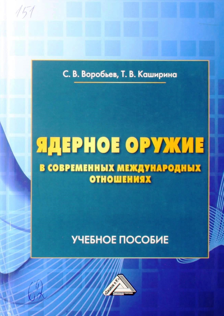 Воробьев, С. В. Ядерное оружие в современных международных отношениях : учебное пособие / С. В. Воробьев, Т. В. Каширина. - Москва : Дашков и Кº, 2020. - 189 с. : ил. - Библиогр.: с. 161-167 (95 назв.) и в подстроч. примеч. - 500 экз. - ISBN 978-5-394-03869-3 : 260 р. - Текст : непосредственный.