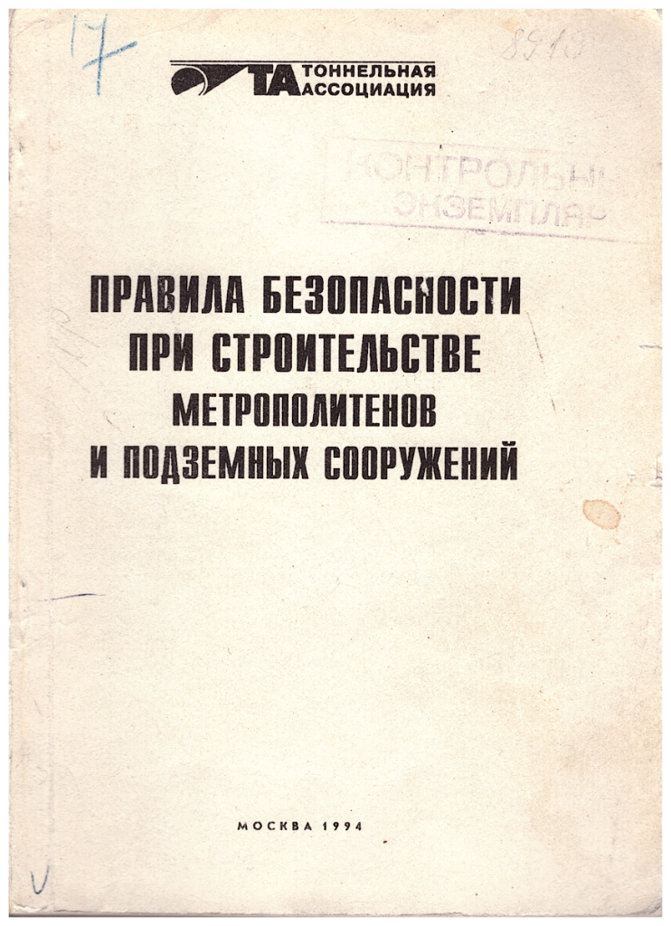 Правила безопасности при строительстве метрополитенов и подземных сооружений : утв. Госгортехнадзором России 24.04.92 и др. / Российская Федерация. Гос. ком. по надзору за безопасным ведением работ в промышленности и горному надзору. - М. : [б. и.], 1994. - 203 c. : ил. - Тираж не указ. - Б. ц. - Текст : непосредственный.