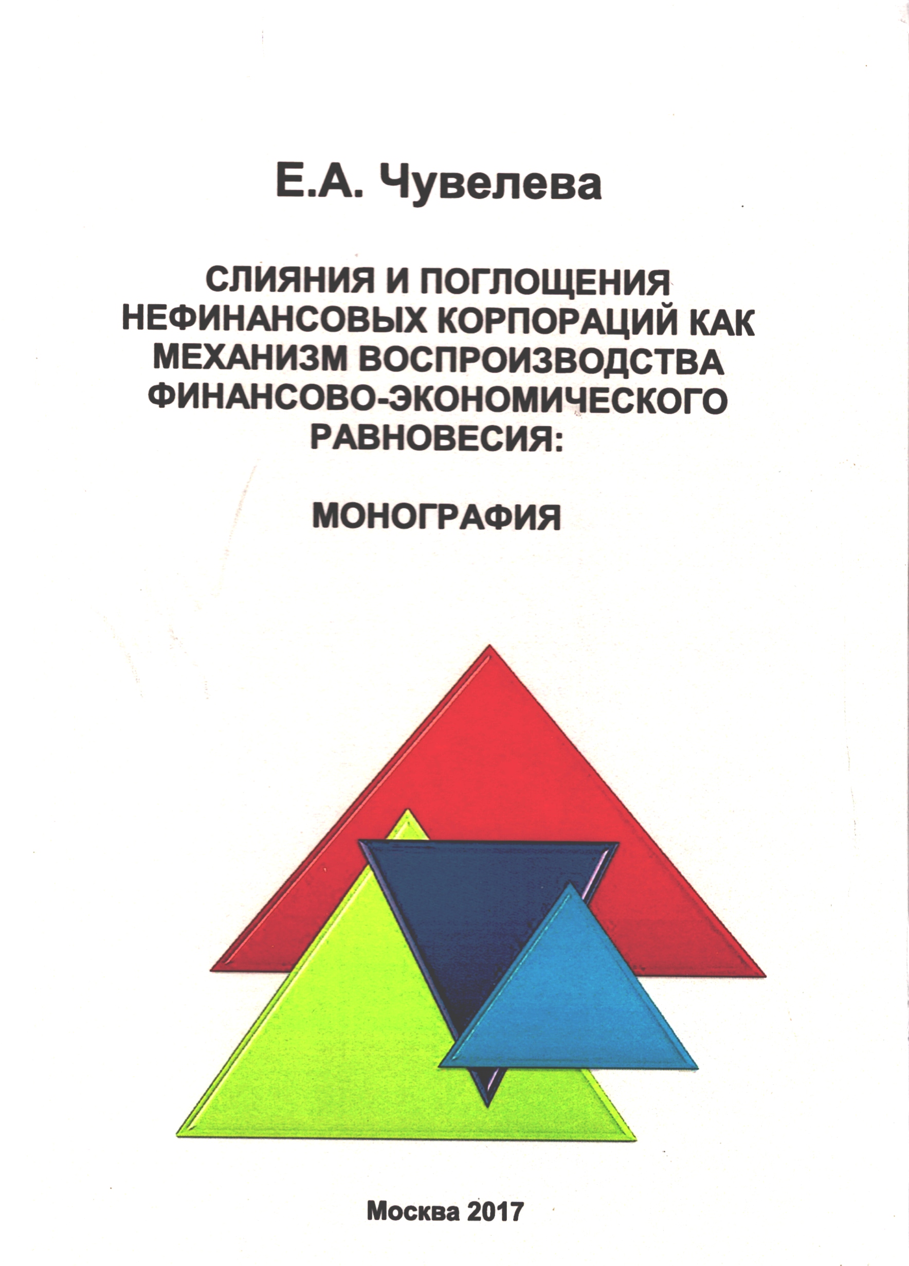 Чувелева, Е. А. Слияния и поглощения нефинансовых корпораций как механизм воспроизводства финансово-экономического равновесия : монография / Е. А. Чувелева. - М. : Актуальность. РФ, 2017. - 548 с. : ил. - Библиогр.: с. 497-544. - 500 экз. - ISBN 978-5-9909756-3-7 : 260 р. - Текст : непосредственный.
