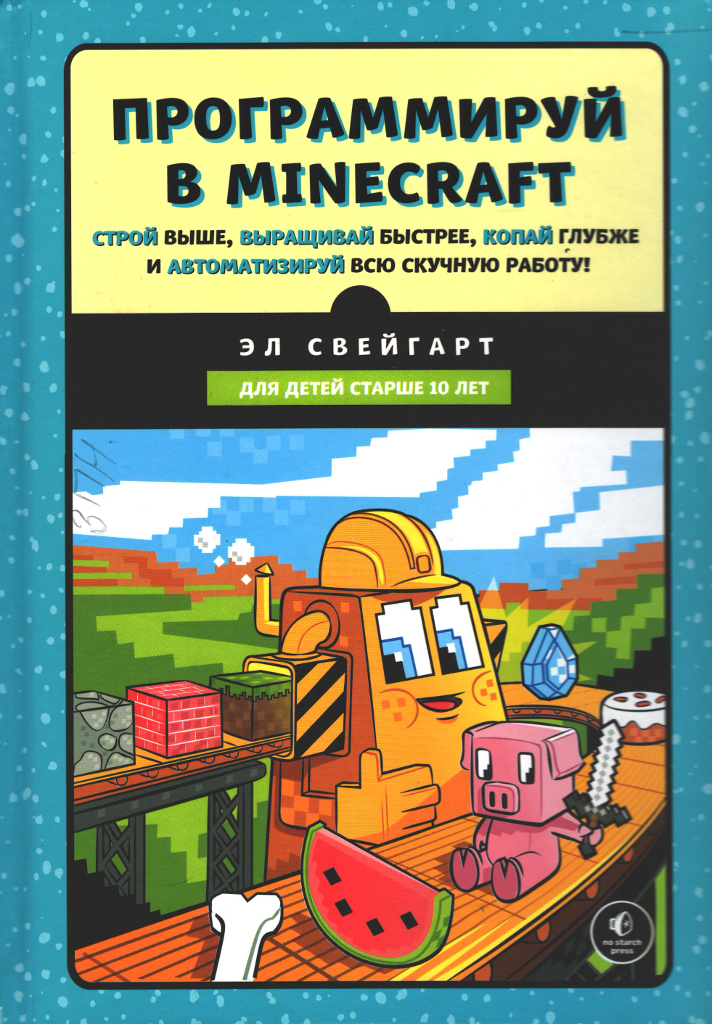 Свейгарт, Э. Программируй в Minecraft : строй выше, выращивай быстрее, копай глубже и автоматизируй всю скучную работу! : [для детей старше 10 лет] / Э. Свейгарт ; [пер. с англ. Райтман М. А.]. - Москва : БОМБОРА™ : Изд-во "Эксмо", 2019. - 344 с. : ил. - (Программирование для детей). - Загл. на корешке : Программирование в Minecraft. - Парал. тит. л. англ. - Пер. изд.: Coding with Minecraft : build taller, farm faster, mine deeper, and automate the boring stuff / A. Sweigart. - 2018. - 2000 экз. - ISBN 978-5-04-096471-0 : 260 р. - Текст : непосредственный.