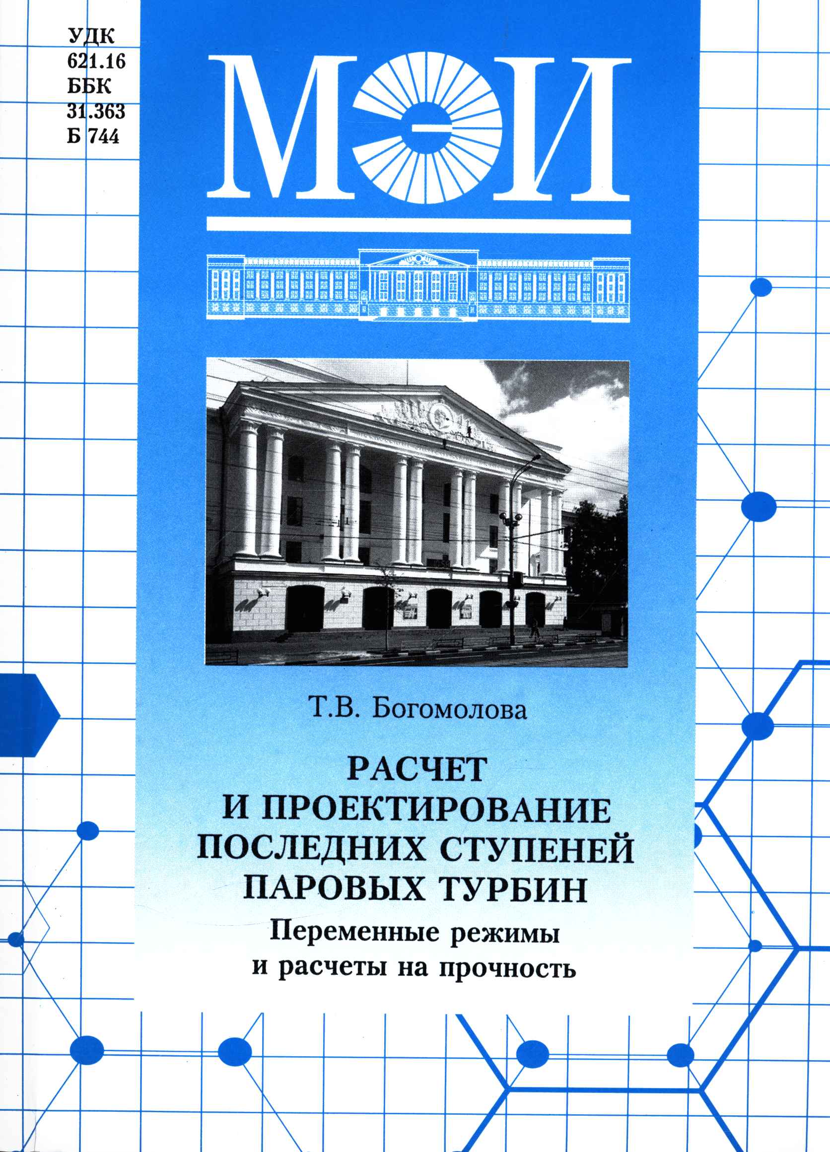 Богомолова, Татьяна Владимировна. Расчет и проектирование последних ступеней паровых турбин. Переменные режимы и расчеты на прочность : учебное пособие по курсу "Паротурбинные установки" для студентов, обучающихся по направлению 13.04.03 "Энергетическое машиностроение" / Т. В. Богомолова ; Министерство науки и высшего образования Российской Федерации, Национальный исследовательский университет "МЭИ". - Москва : Изд-во МЭИ, 2021. - 85 с. : ил. - Библиогр.: с. 84-85 (15 назв.). - 100 экз. - ISBN 978-5-7046-2456-1 : 100 р. - Текст (визуальный) : непосредственный.