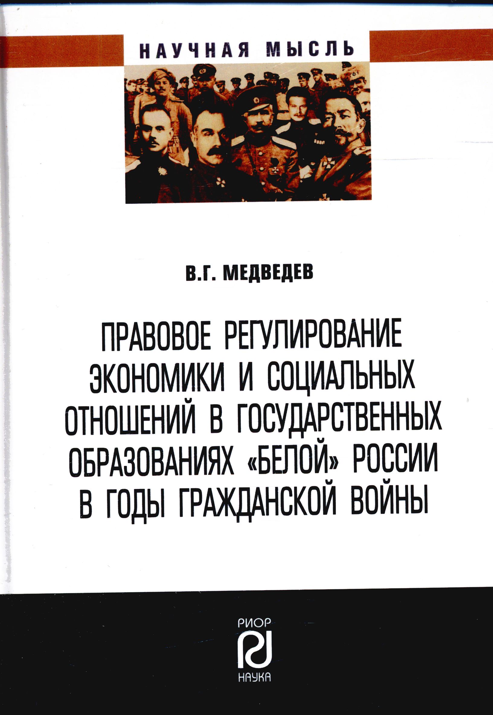 Медведев, Валентин Григорьевич. Правовое регулирование экономики и социальных отношений в государственных образованиях "белой" России в годы гражданской войны: монография / В. Г. Медведев : монография / В. Г. Медведев. - Москва : РИОР, 2022. - 310, [1] с. - (Научная мысль). - Библиогр. в конце кн. - 500 экз. - ISBN 978-5-369-02099-9. - DOI 10.29039/02099-9 : 260 р. - Текст (визуальный) : непосредственный.