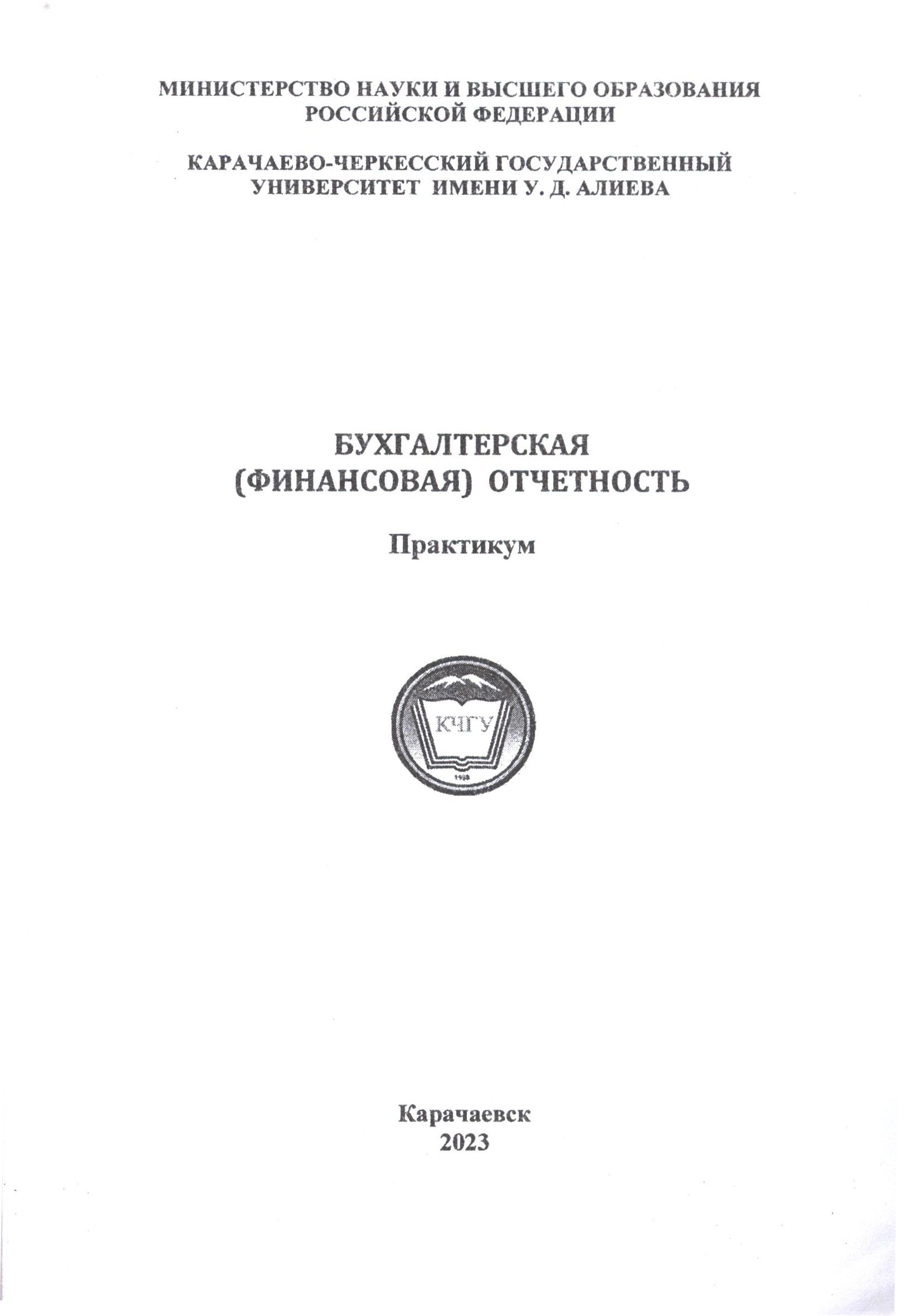 Бухгалтерская (финансовая) отчетность : практикум / Министерство науки и высшего образования Российской Федерации, Карачаево-Черкесский государственный университет имени У. Д. Алиева (КЧГУ) ; авторы-составители: Кочкарова Мадина Азрет-Алиевна, Айдинова Диана Хаджи-Муратовна. - Карачаевск : Изд-во Карачаево-Черкесского гос. ун-та им. У. Д. Алиева, 2023. - 98 с. : табл. - Библиогр.: с. 92-96. - 100 экз. - ISBN 978-5-8307-0707-7 : 100 р. - Текст (визуальный) : непосредственный.