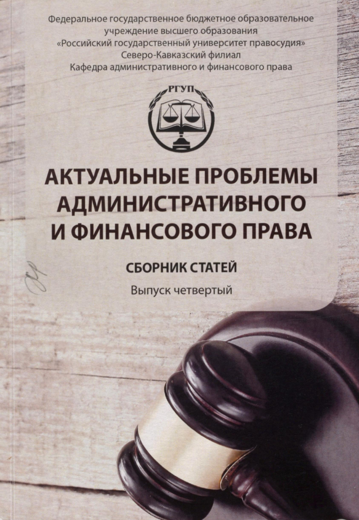 Аннотация: В сборнике представлены статьи участников всероссийских научно-практических научных мероприятий, организованных кафедрой административного и финансового права Северо-Кавказского филиала Федерального государственного бюджетного образовательного учреждения высшего образования "Российский государственный университет правосудия" (г. Краснодар) в 2022 и 2023 годах. В статьях охвачен широкий круг актуальных проблем административного и финансового права: вопросы правового регулирования общественных отношений в сфере публичного управления, тенденции и перспективы совершенствования правотворчества и правоприменения в сфере финансовой деятельности, а также проблемы реализации полномочий субъектов публичной власти в Российской Федерации. Сборник адресован научным работникам, преподавателям, практикующим юристам, аспирантам, магистрантам, студентам и всем, кто интересуется вопросами правового регулирования административных и финансовых правоотношений.