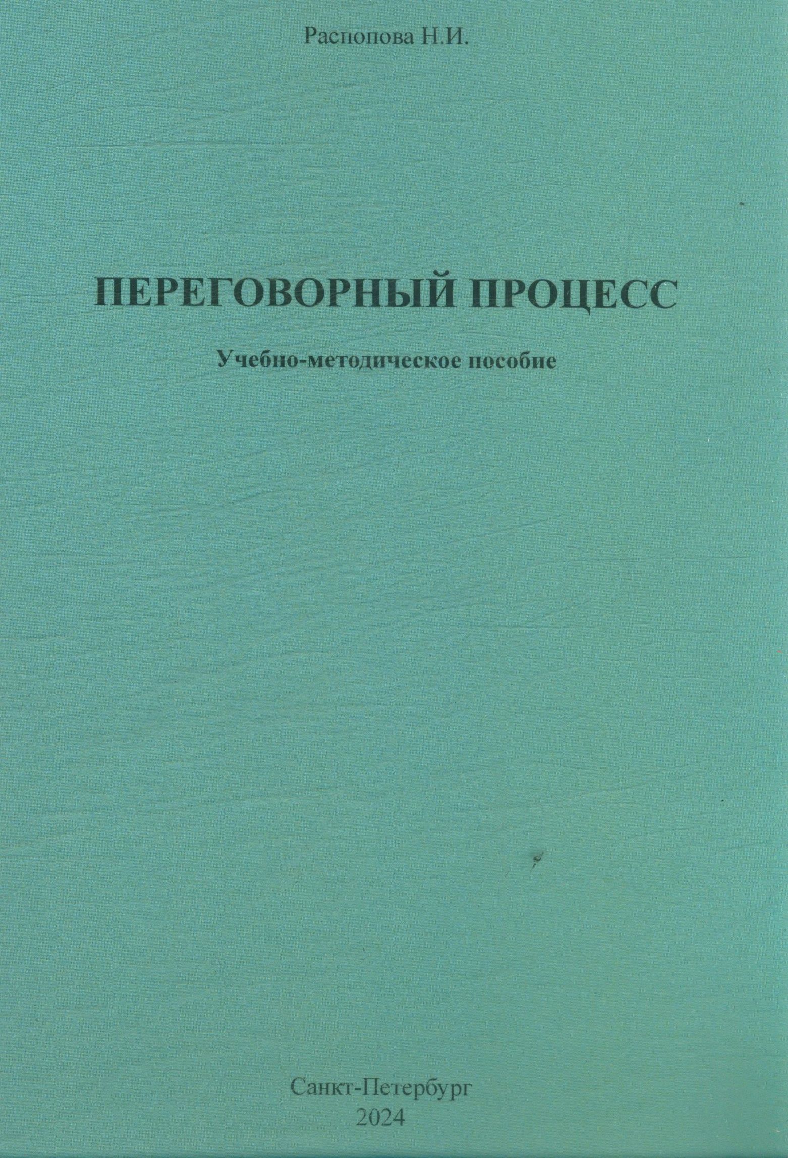 Распопова, Нина Ивановна. Переговорный процесс : учебно-методическое пособие / Распопова Н. И. . - Санкт-Петербург : Печатный цех, 2024. - 59 с. - Библиогр.: с. 57-58. - Тираж не указ. - ISBN 978-5-907769-69-4 : 100 р. - Текст (визуальный) : непосредственный.