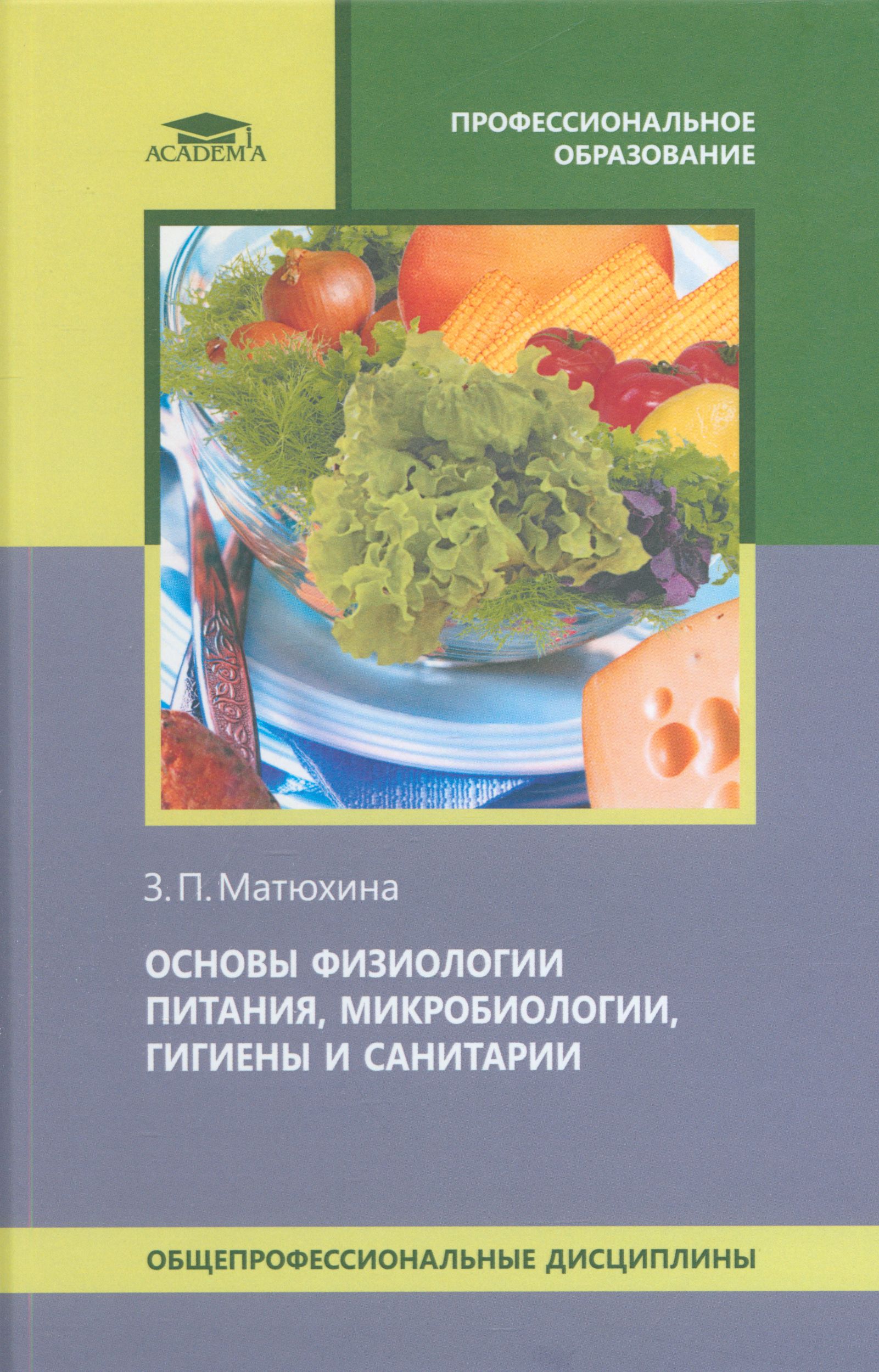 Матюхина, Зинаида Петровна. Основы физиологии питания, микробиологии, гигиены и санитарии : учебник / З. П. Матюхина. - 12-е изд., стер. - Москва : Академия, 2024. - 252, [1] с. : цв. ил. - (Профессиональное образование. Общепрофессиональные дисциплины). - Библиогр.: с. 247-248. - 40 экз. - ISBN 978-5-0054-2684-0 : 600 р. - Текст (визуальный) : непосредственный.