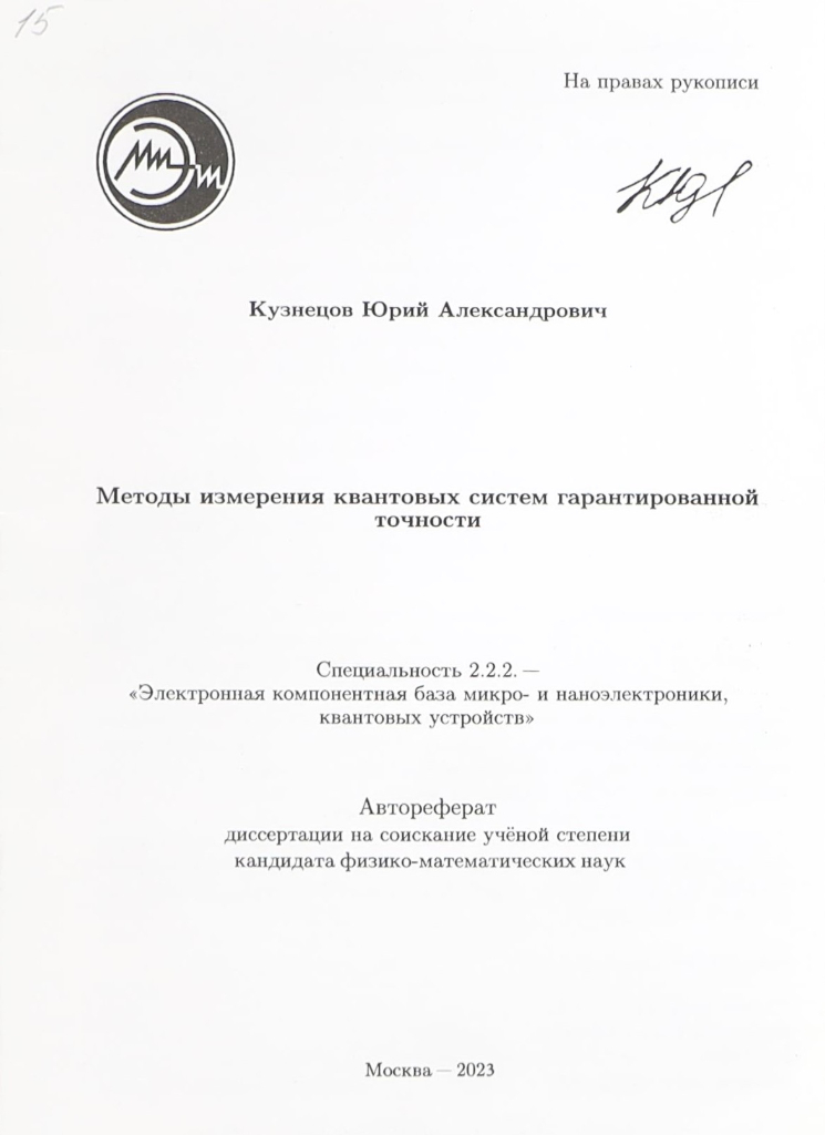 Кузнецов, Юрий Александрович. Методы измерения квантовых систем гарантированной точности : специальность 2.2.2. - "Электронная компонентная база микро- и наноэлектроники, квантовых устройств" : автореферат диссертации на соискание учёной степени кандидата физико-математических наук / Кузнецов Юрий Александрович ; Национальный исследовательский университет "Московский институт электронной техники". - Москва : [б. и.], 2023. - 24 с. : ил. - 80 экз. - Текст : непосредственный.
