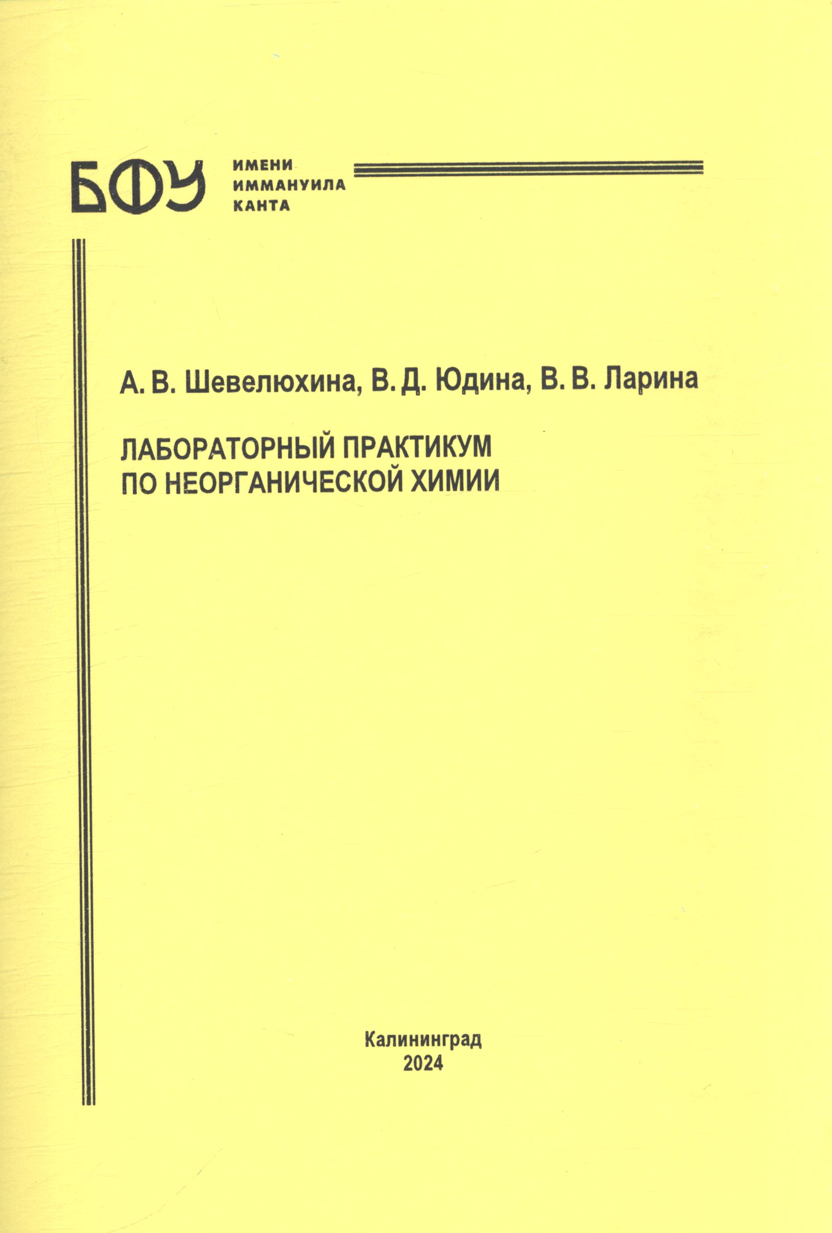 Шевелюхина, Александра Васильевна. Лабораторный практикум по неорганической химии : учебно-методическое пособие / А. В. Шевелюхина, В. Д. Юдина, В. В. Ларина ; Балтийский федеральный университет им. Иммануила Канта. - Калининград : Изд-во Балтийского федерального ун-та им. И. Канта, 2024. - 55, [4] с. : ил. - Библиогр. в конце кн. (9 назв.). - 300 экз. - ISBN 978-5-9971-0868-7 : 240 р. - Текст (визуальный) : непосредственный.