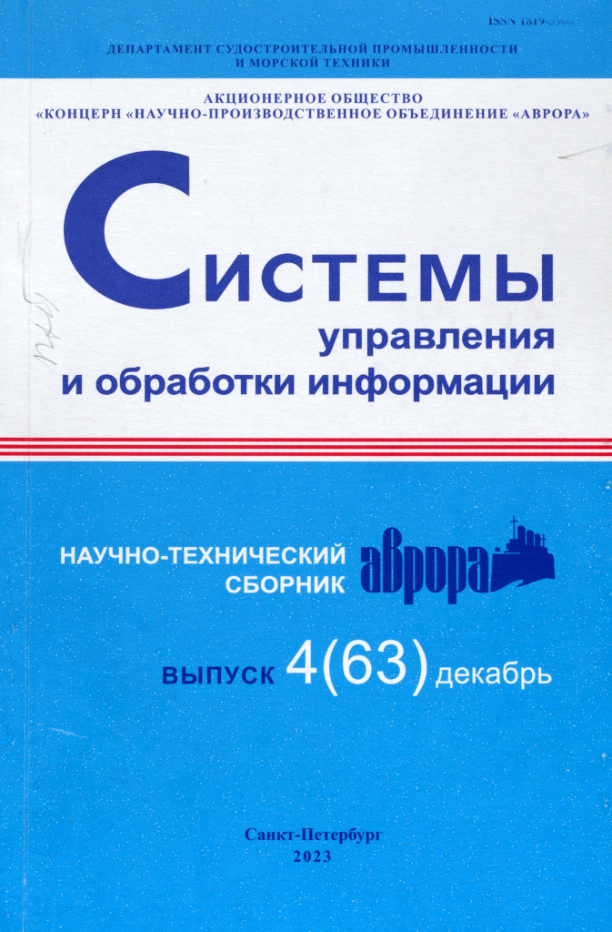 Системы управления и обработки информации = Control and information processing systems : научно-технический сборник / Департамент судостроительной промышленности и морской техники, Акционерное общество "Концерн "Научно-производственное объединение "Аврора". - Санкт-Петербург : Концерн "НПО Аврора", 20 - . - ISSN 1819-3900. - Текст : непосредственный.Вып. 4(63) / главный редактор В. Ю. Бобрович. - 2023. - 82 с. : ил., цв. ил. - Библиогр. в конце ст. - 110 экз.