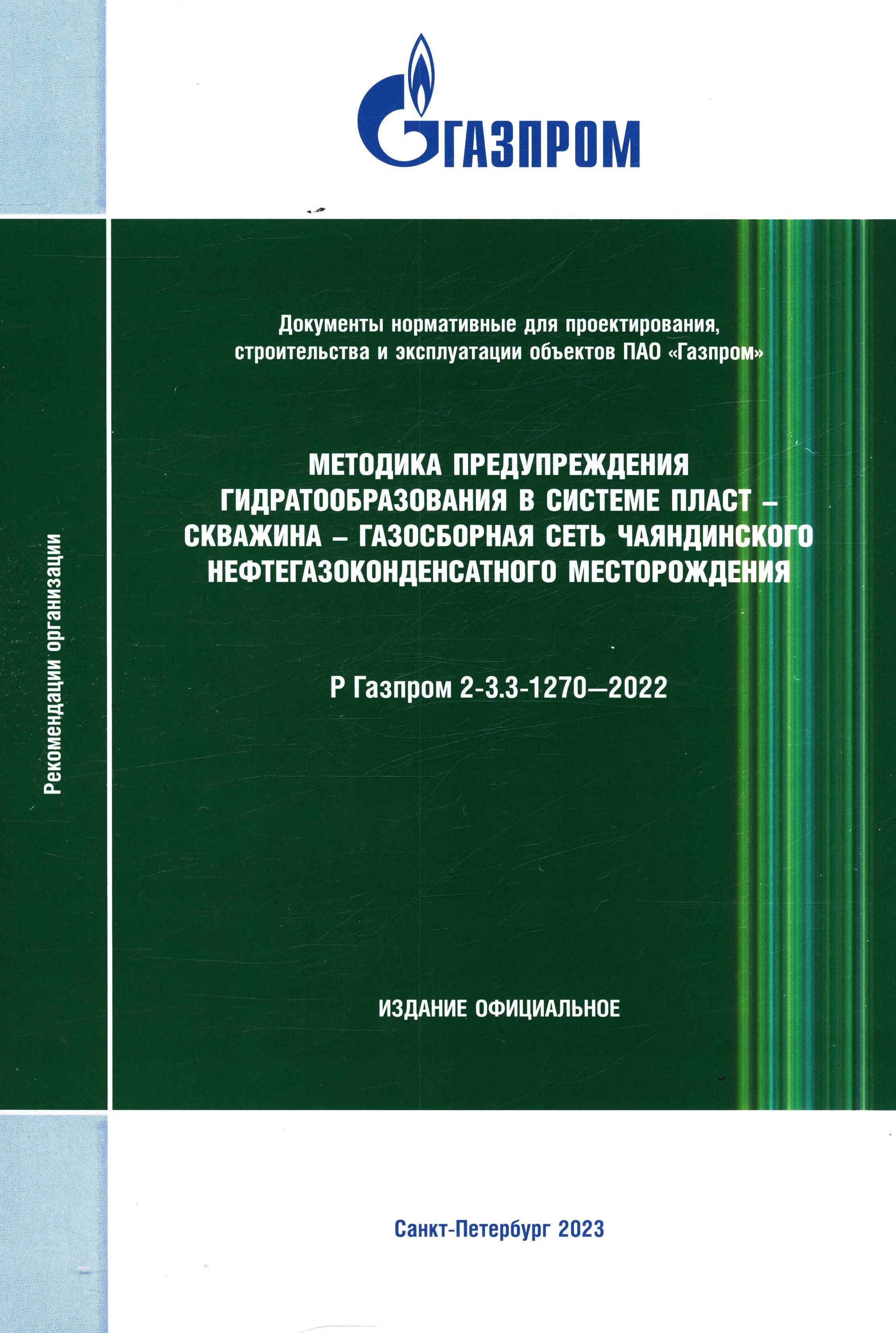 Методика предупреждения гидратообразования в системе пласт-скважина-газосборная сеть Чаяндинского нефтегазоконденсатного месторождения : рекомендации организации : утверждены Департаментом 307 ПАО "Газпром" 12 января 2022 г. : введены впервые : дата введения 2022-03-01 / Публичное акционерное общество "Газпром" ; разработаны: Общество с ограниченной ответственностью "Научно-исследовательский институт природных газов и газовых технологий - Газпром ВНИИГАЗ" (ООО "Газпром ВНИИГАЗ"). - Санкт-Петербург : Газпром экспо, 2023. - IV, 29 с. : ил. - (Документы нормативные для проектирования, строительства и эксплуатации объектов ПАО "Газпром"). - Библиогр.: с. 28 (1 назв.). - 53 экз. - Текст (визуальный) : непосредственный.
