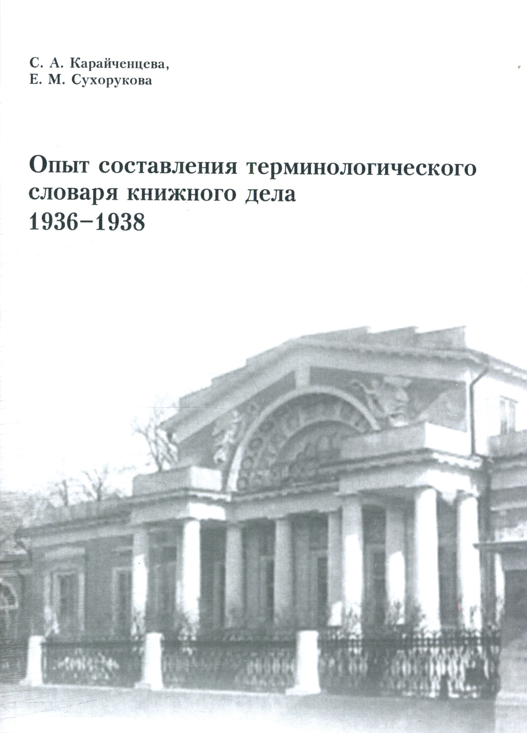 Карайченцева, Светлана Александровна. Опыт составления терминологического словаря книжного дела (1936-1938 гг.) / С. А. Карайченцева, Е. М. Сухорукова ; Российская государственная библиотека, Российская книжная палата. - Москва : Пашков дом, 2025. - 314, [1] с. + [8] л. ил. - (Московские книжники и книжное дело: по архивам Книжной палаты). - Алф. указ. терм., вкл. в словари: с. 299-315. - ISBN 978-5-7510-0895-6 : 313.10 р. - Текст (визуальный) : непосредственный.