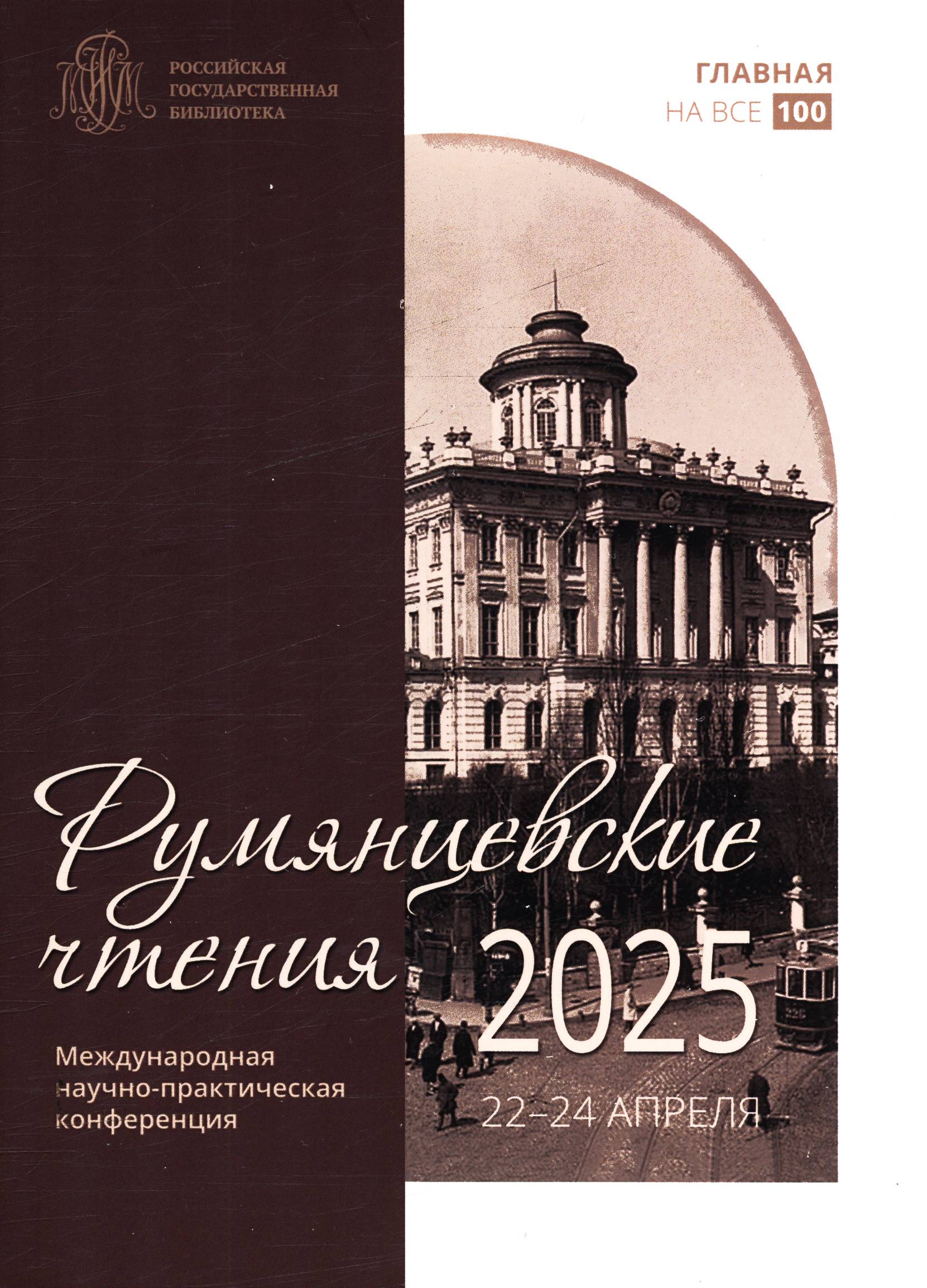 Румянцевские чтения - 2025 = The Rumyantsev readings - 2025 : материалы Международной научно-практической конференции (22-24 апреля 2025 г.) / Министерство культуры Российской Федерации, Российская государственная библиотека [и др.] ; составитель Иванова Е. А. - Москва : Пашков дом, 2025 - . - Парал. тит. л. англ. - ISBN 978-5-7510-0947-2. - Текст : непосредственный.
