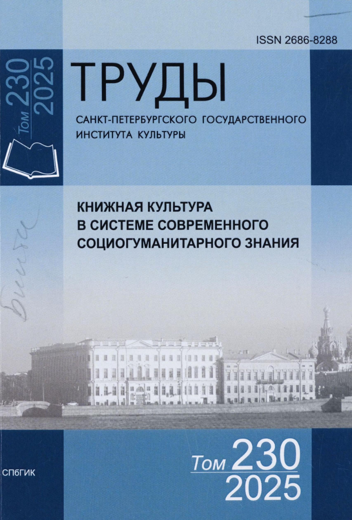 Т. 230 : Книжная культура в системе современного социогуманистического знания : материалы всероссийской научной конференции "XXIII Смирдинские чтения", 18-19 апреля 2024 г., Санкт-Петербург. - 2025. - 204 с. - Библиогр. в конце ст. - 100 экз. - 400 р.