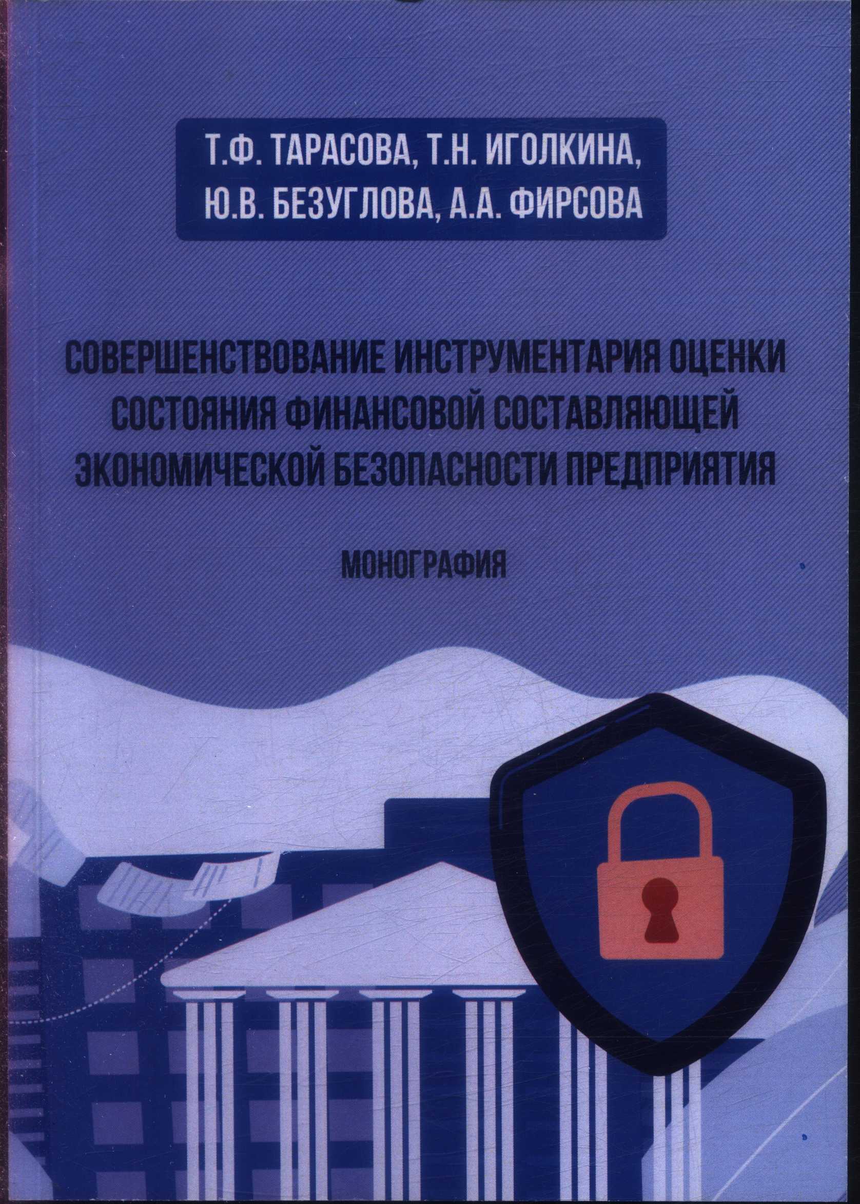 61. Совершенствование инструментария оценки состояния финансовой составляющей экономической безопасности предприятия : монография / Т. Ф. Тарасова, Т. Н. Иголкина, Ю. В. Безуглова, А. А. Фирсова ; Белгородский университет кооперации, экономики и права. - Белгород : Эпицентр, 2023. - 131, [1] с. : ил. - Библиогр.: с. 117-128 (80 назв.). - 500 экз. - ISBN 978-5-6049292-0-9 : 200 р. - Текст (визуальный) : непосредственный.
